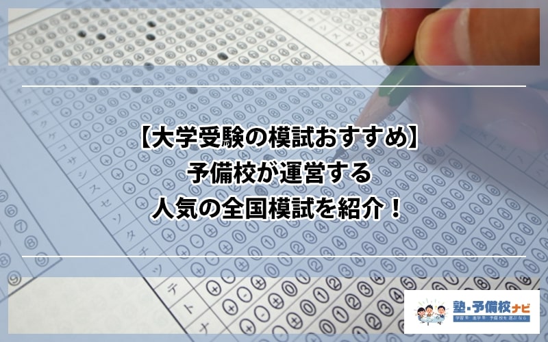 大学受験でおすすめの模試が知りたい方は「【大学受験の模試おすすめ】予備校が運営する人気の全国模試を紹介!」をぜひ参考にしてください。